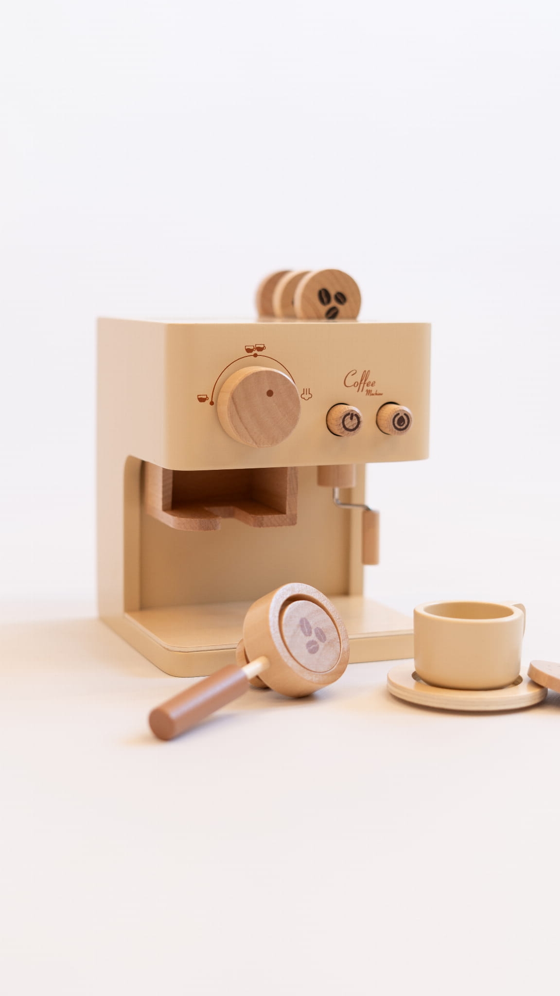 Drewniany ekspres do kawy dla dzieci