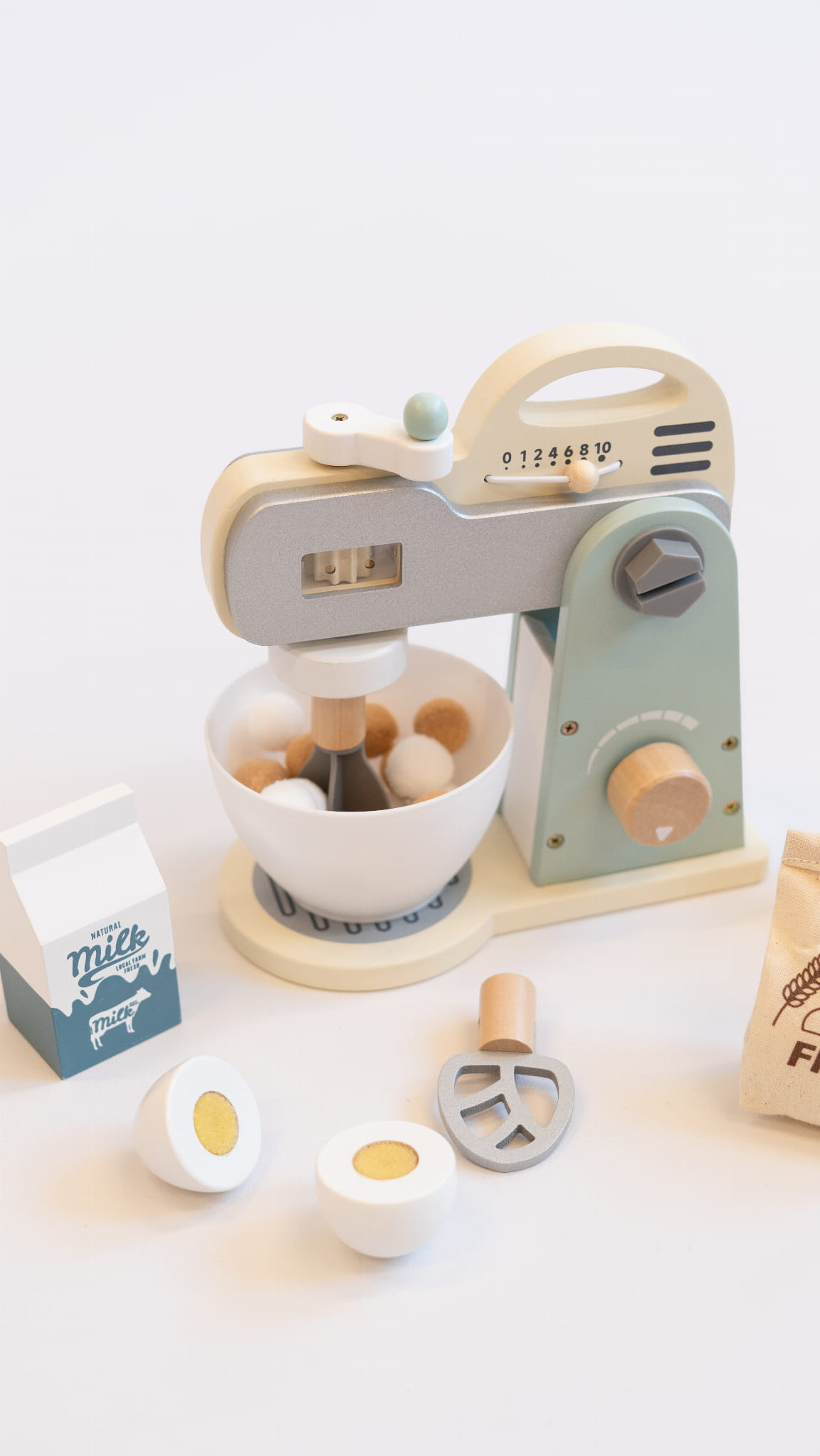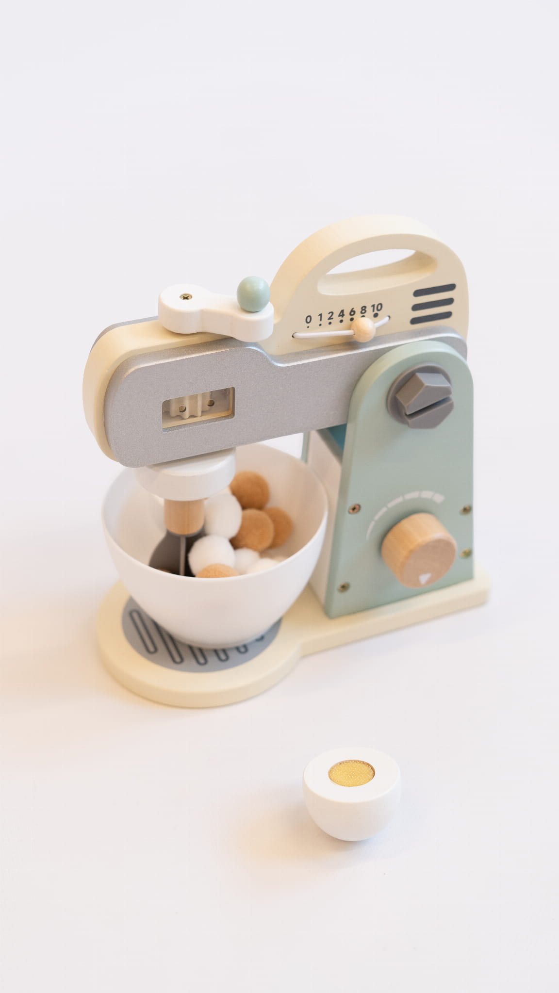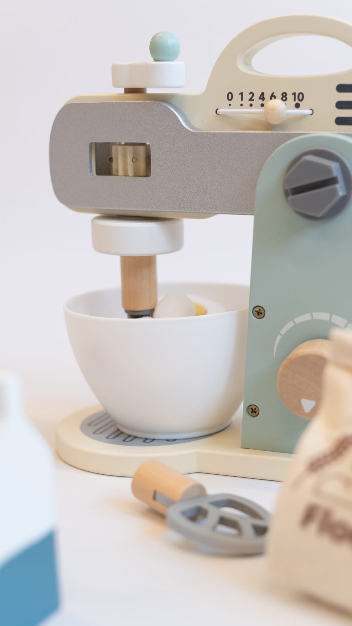 - realistyczne detale – ruchoma końcówka miksera, pokrętło regulacji oraz miska do mieszania