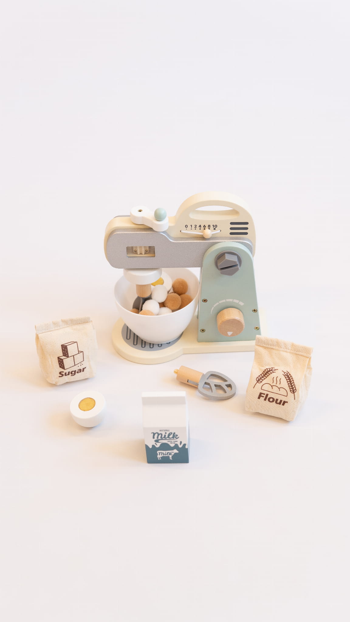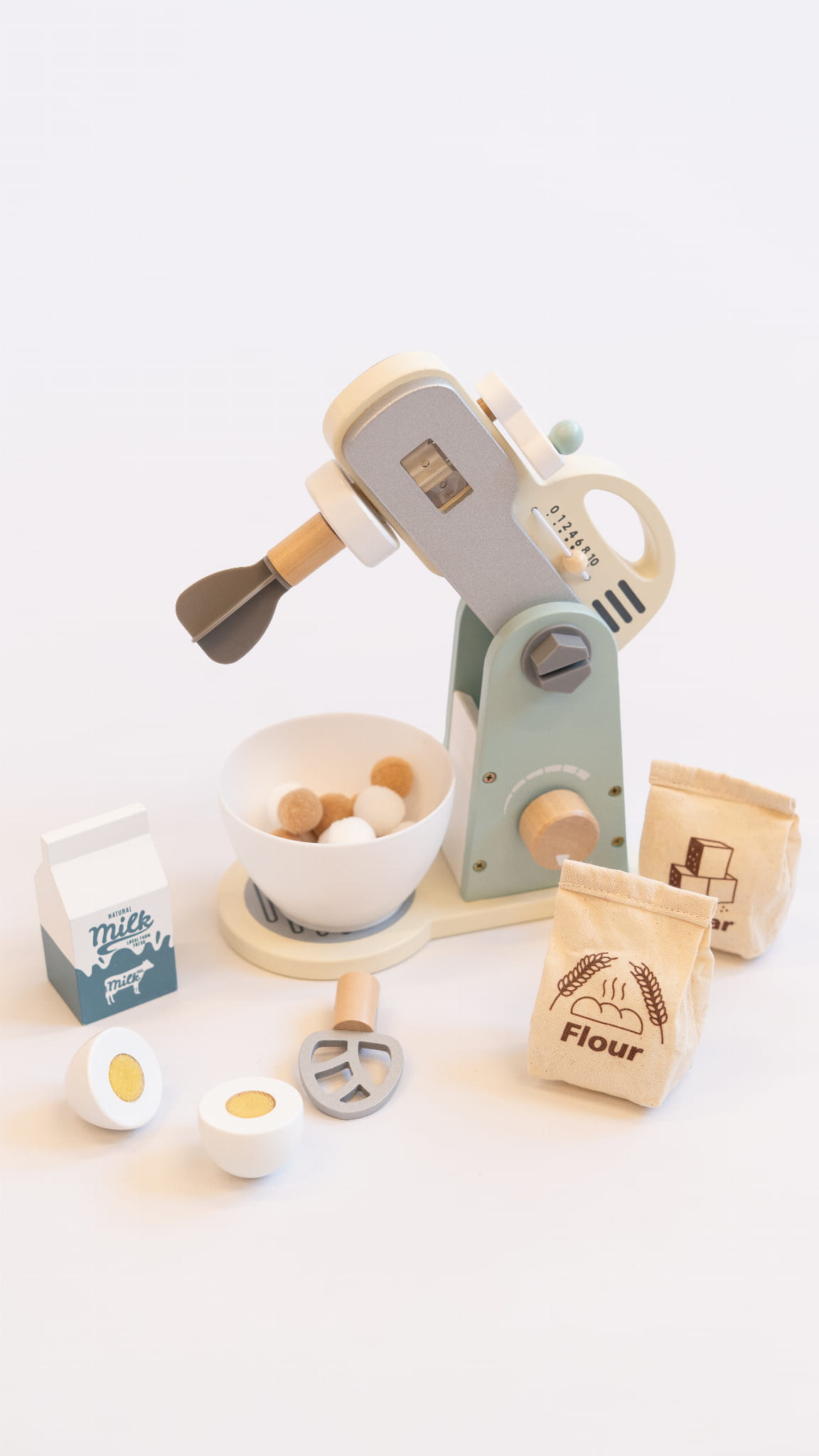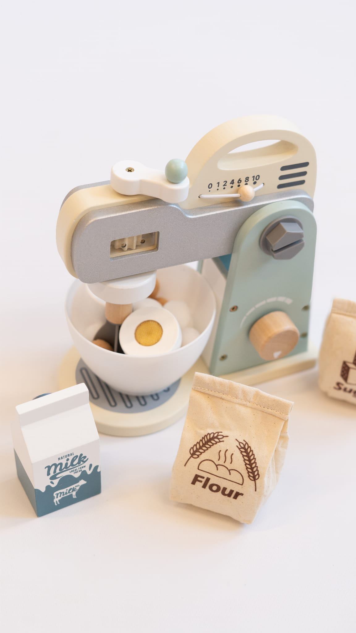 - realistyczne detale – ruchoma końcówka miksera, pokrętło regulacji oraz miska do mieszania