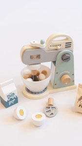 Starannie wykonany drewniany mikser kuchenny to zabawka stworzona z myślą o dzieciach, które uwielbiają odkrywać świat poprzez zabawę i naśladowanie codziennych czynności dorosłych. Subtelna pastelowa kolorystyka, minimalistyczna forma oraz dopracowane detale sprawiają, że mikser pięknie prezentuje się w dziecięcej kuchni i przestrzeni zabawy.