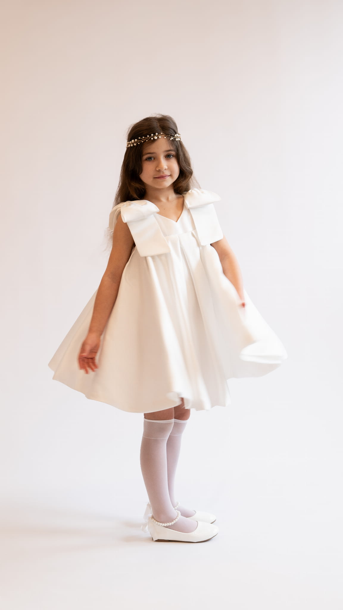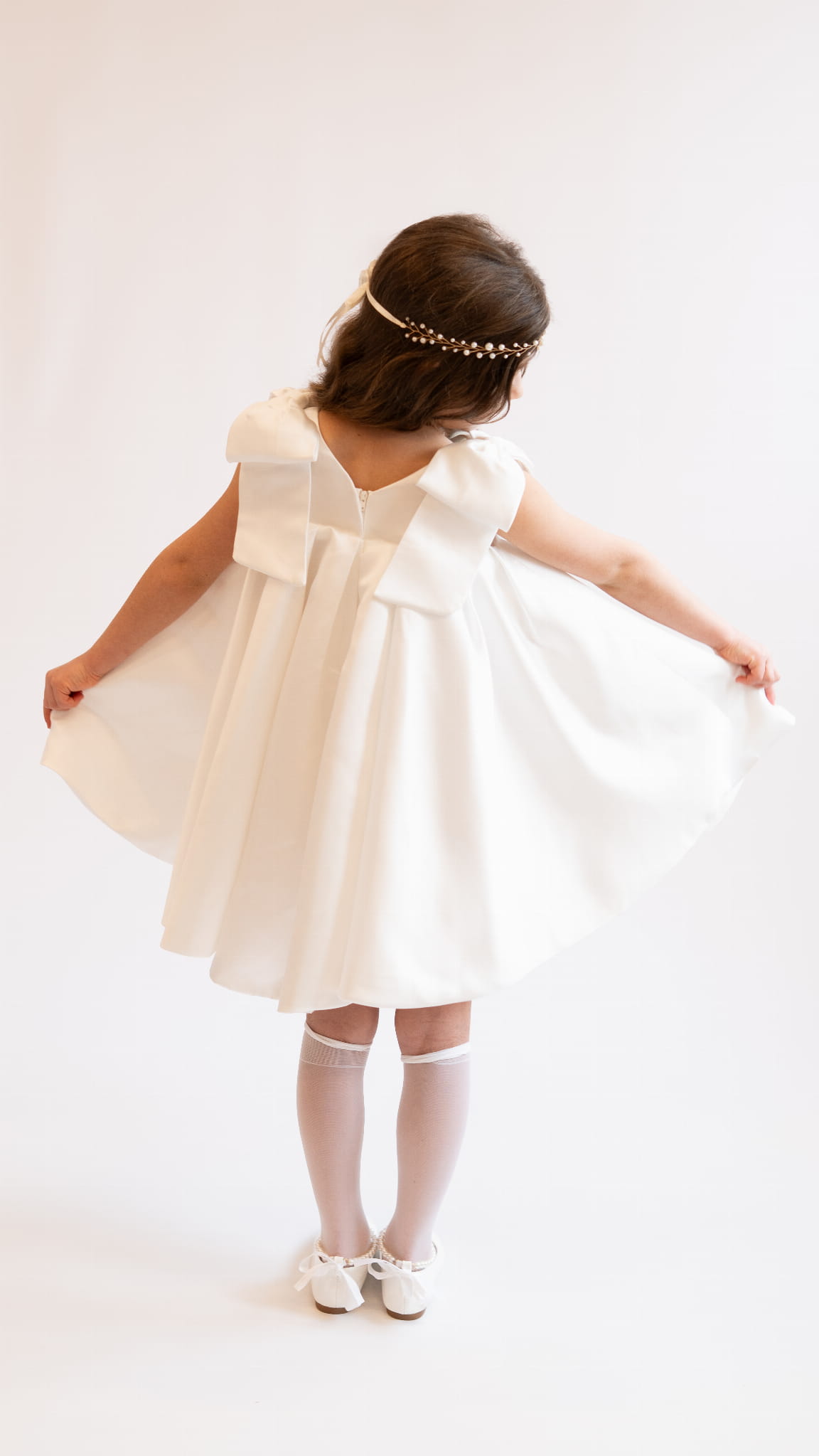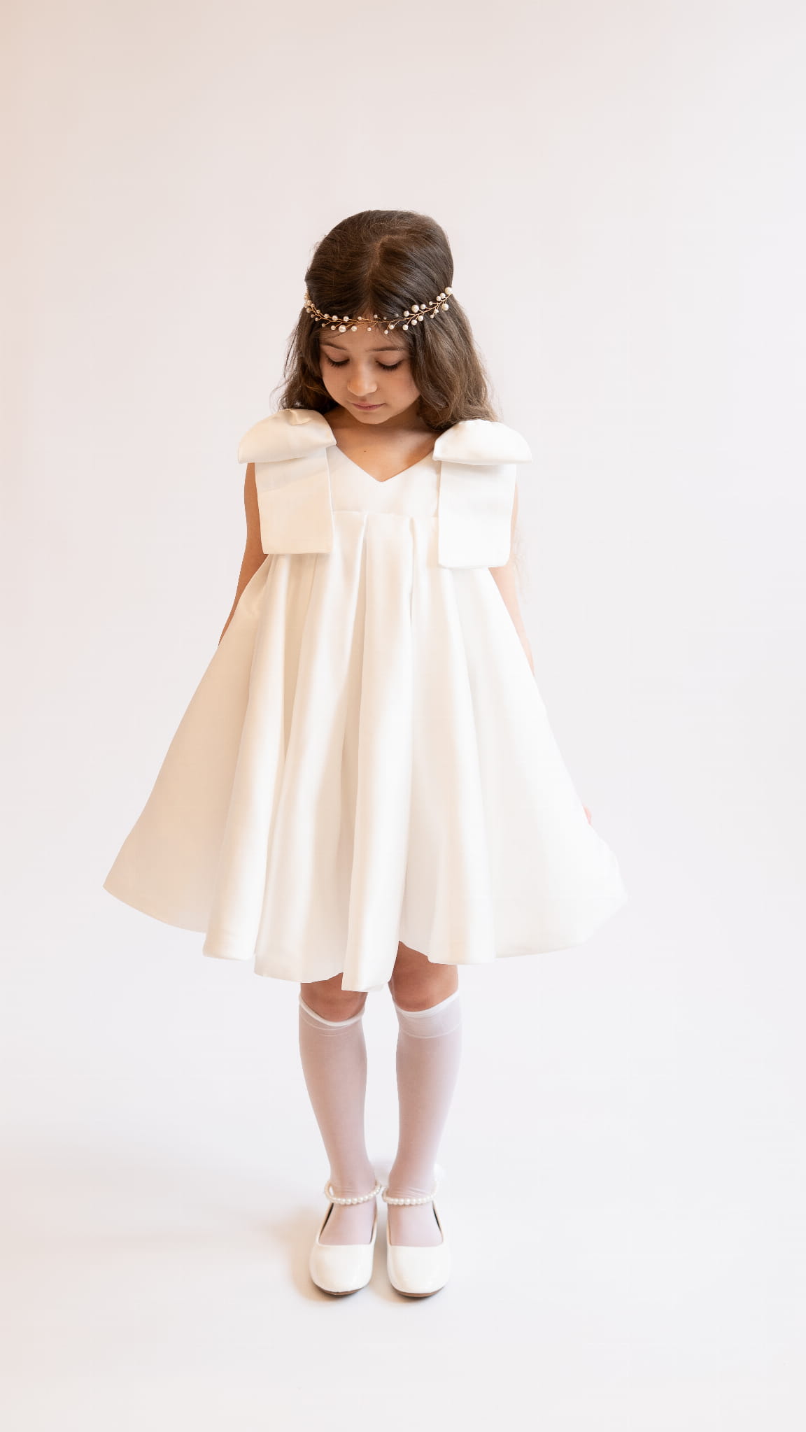 Idealna dla dziewczynki na chrzest, wesele, komunię, uroczystości rodzinne oraz sesje zdjęciowe. Klasyczna forma i subtelne zdobienia sprawiają, że model pozostaje uniwersalny i ponadczasowy.