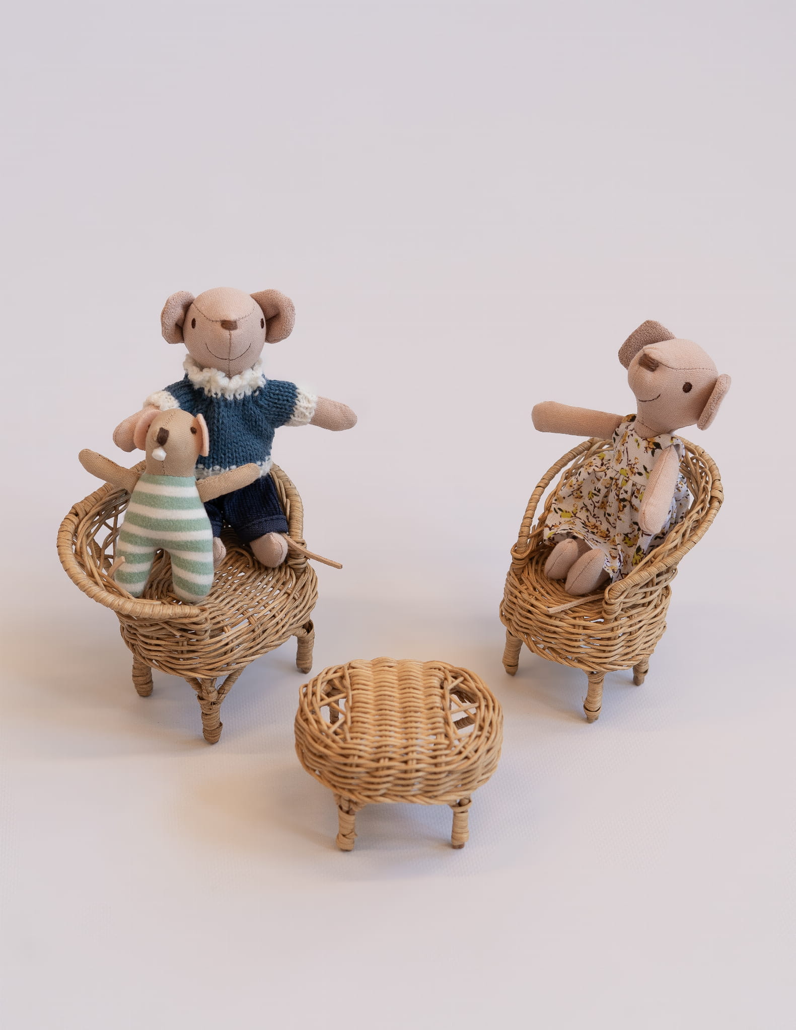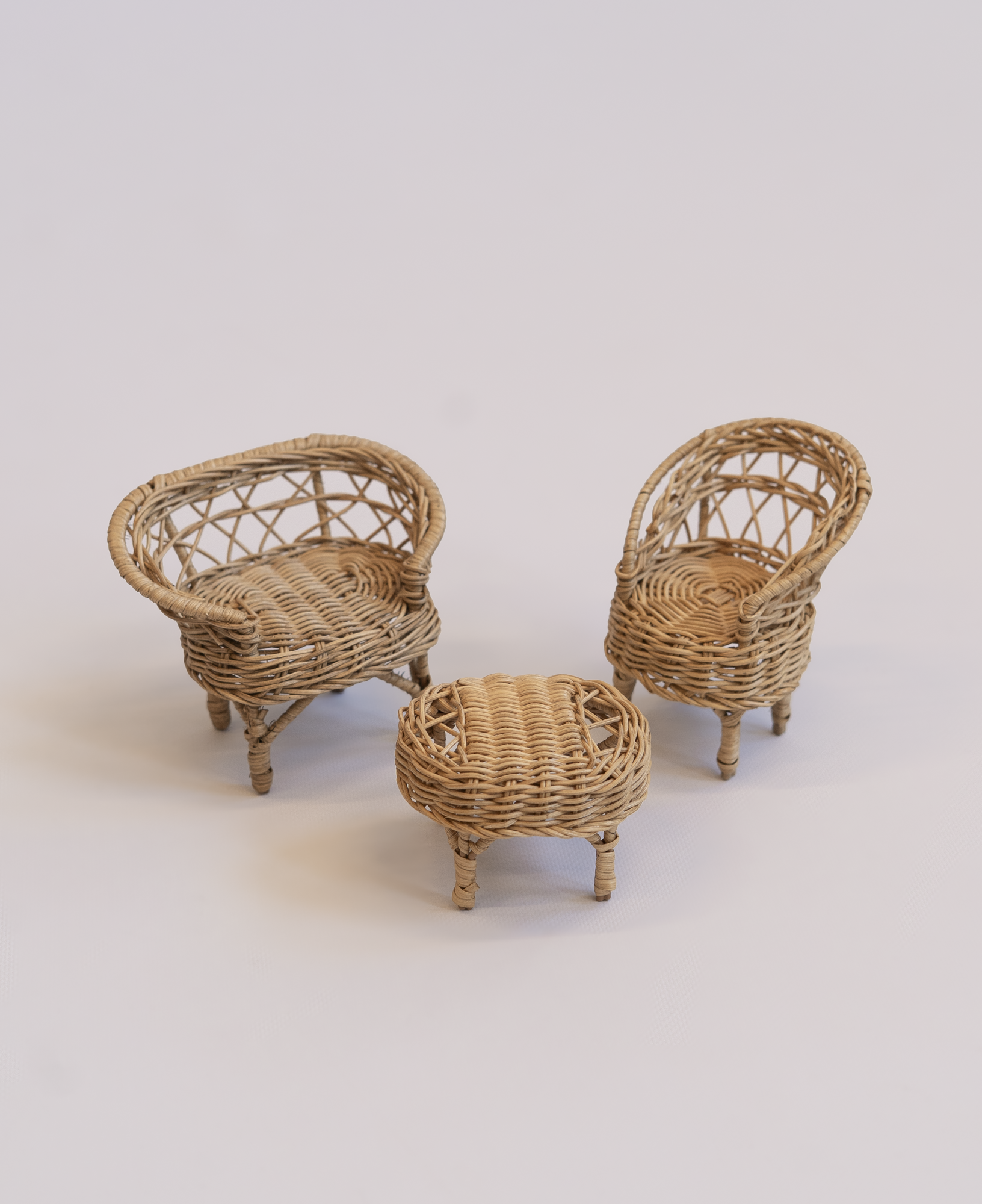 Wiklinowy zestaw mebelków to urokliwy dodatek do magicznego świata myszek z kolekcji Mysi Świat. Każdy element został starannie wykonany ręcznie z naturalnej wikliny, co nadaje mu niepowtarzalny charakter i subtelny, rustykalny urok.